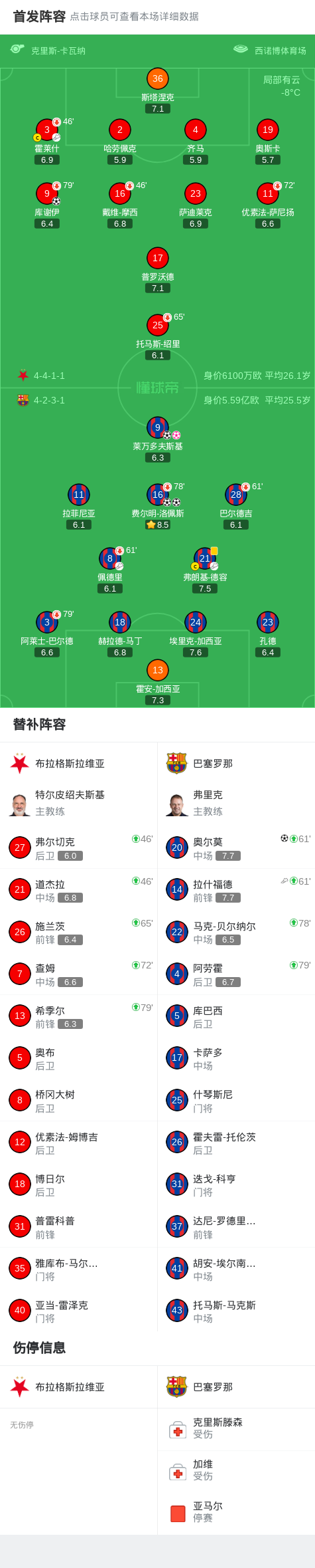 第61分钟,佩德里受伤被奥尔莫换下,拉什福德替补巴尔德吉上场